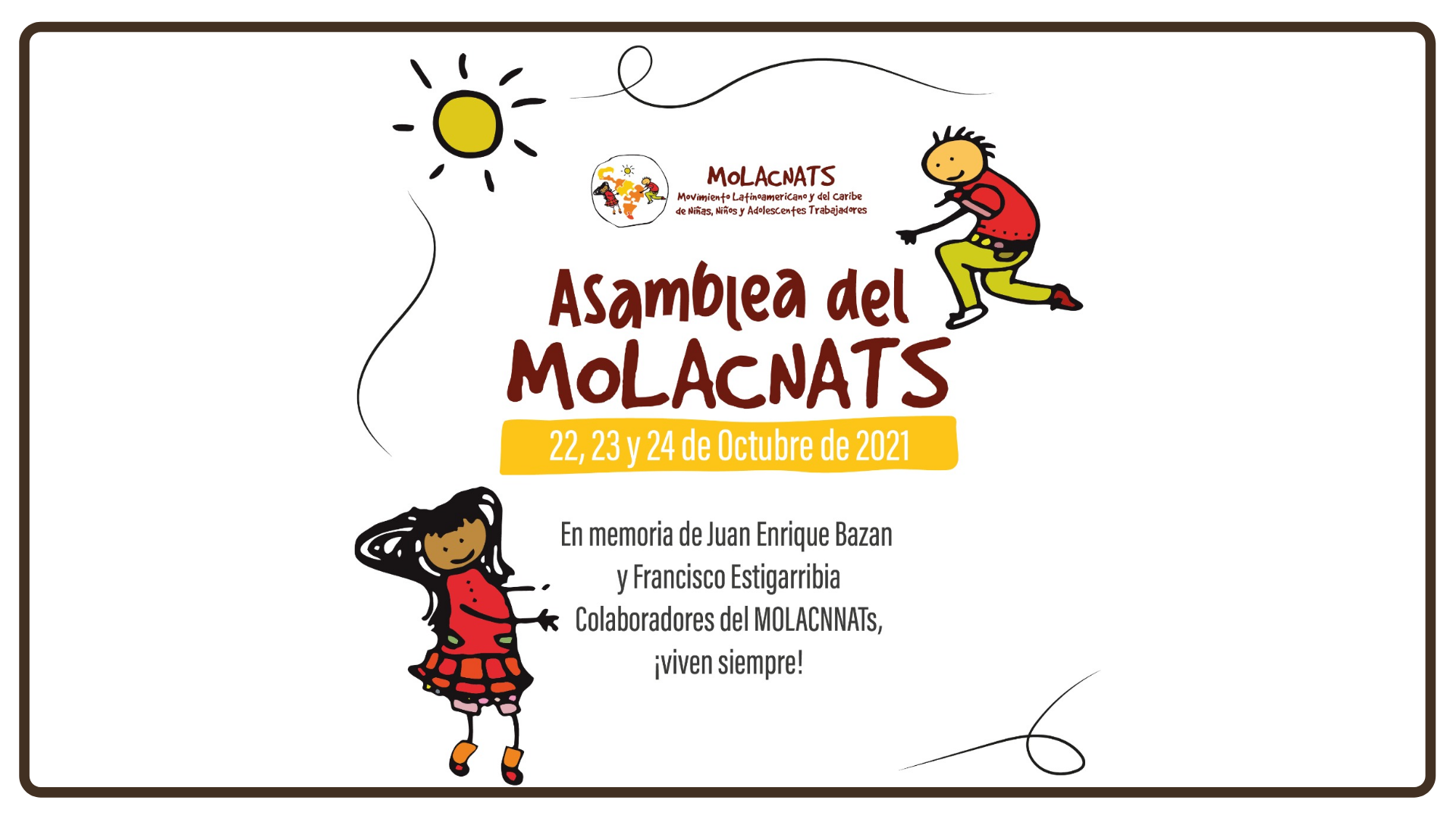 Nosotras y nosotros, las niñas, los niños y adolescentes trabajadores (NNATs) de Latinoamérica y del Caribe, nucleados en el Movimiento Latinoamericano y del Caribe (MOLACNATs), con motivo de la celebración de nuestro XI Encuentro Latinoamericano y del Caribe de NNATs, hemos realizado las VIII Jornadas Pedagógicas Internacionales, con el tema: “INFANCIAS – TRABAJO – PROTAGONISMO – DIGNIDAD, ampliando las miradas en los nuevos escenarios”, y ambas actividades las hicimos en memoria y homenaje a los compañeros Colaboradores eternos, Juan Enrique Bazán del Perú (12-07-1950/09-10-2020) y Francisco Estigarribia del Paraguay (04-10-1988/19-09-2018), por la entrega, constancia, dedicación y compromiso hacia la infancia trabajadora de sus países y de América Latina.